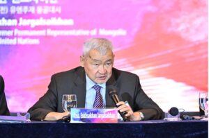 [発表中のジャガルサイカン・エンクサイカン元国連駐在モンゴル大使]