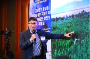 ペ・チョルヨン 柳韓(ユーハン)・キムバリー CSRチーム長は「1984年から『私たちの山河を緑豊かに』キャンペーンを通じて5,700万本以上の木を植えてきたほか、2003年からモンゴルと協力し、毎年100万本の木を植えている」と紹介しました。