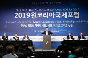 前日の14日には、ソウルのプラザホテルでフォーラムが開催され、韓国内外のトップレベルの政策立案者や市民社会の指導者が「韓国の統一の機会:ビジョン、リーダーシップ、行動」というテーマの下、VIPによるプレナリー、統一に対する市民の参画、非核化、経済的機会、宗教の自由と人権、日韓関係、青年のセッションを通じて、政治の限界を打破する市民による第二の独立市民運動としての平和自由統一を目標に議論しました。