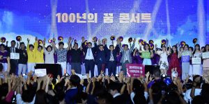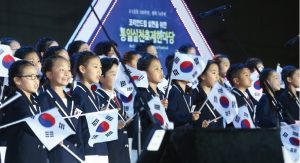 翌日のフェスティバルでは溢れる観衆の中、統一実践市民大会では熱烈な講演とコンサートがあり、特に在日コリアンでオペラ歌手である田月仙さんが深い感動を与えました。第2部では韓国独立運動100周年を、歌を通して歴史を綴った「100年の夢コンサート」で日本でも有名なキム・ヨンジャさんやジョン・ダギョンさんなど15名の有名な演歌歌手が熱唱し、朝鮮戦争により離散家族になった人々による「一千万離散家族委員会合唱団」が「我々の願いは統一」の歌を会場と共に歌い幕を閉じました。