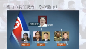 ■金正恩氏の権力の委任統治について。下の人たちに委任されるようになっていると言われている。健康問題や責任逃れ、もしくは集団指導体制に移行しているのでは、などの理由が上がっているが、少しずつ体制に変化が出ている。