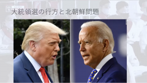 ■大統領選の行方と北朝鮮問題について。トランプ大統領は再選すると交渉再開。バイデン氏の場合、北朝鮮問題については積極的に動かない予想が立てられる。むしろアメリカと北朝鮮の緊張は高まるかもしれない。