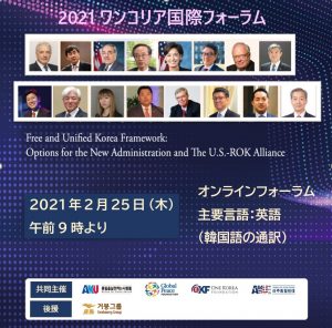 今回のフォーラムは、一連のワンコリア国際フォーラムのシリーズとして開催され、韓国と米国の国会議員、主要なシンクタンクの専門家が参加し、朝鮮半島の平和自由統一を最終目標に想定して安全保障と非核化、共同の経済的繁栄と人権等の韓半島問題の解決策を模索します。韓半島の統一を願われる多くの方々の関心と参加をお願いいたします。