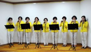1日目は9日、「タムナステイ済州ホテル」セミナー室で、ワークショップ開会式を開催。開会祝賀のために、「ナモソム」がオカリナ演奏を披露しました。ナモソムは、「分かち合い(ナヌム)、侍る(モシム)、仕える(ソムギム)」を意味するそれぞれのハングルの頭文字を取って付けた名前で、シニアオカリナ演奏チームです。2013年から、韓国と北朝鮮出身の住民によって構成された25人が、音楽を通して生活密着型の統一運動を行っています。