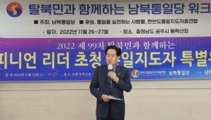李相振朝鮮半島統一指導者総連合中央会長が昨年11月26日、脱北者と共に行うオピニオンリーダー招請統一指導者特別ワークショップで講演している。